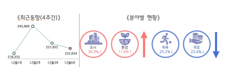 ○ 12월 4주차 민원은 222,654건(일평균 31,807건)으로 지난 주(227,852건) 대비 2.3% 감소
