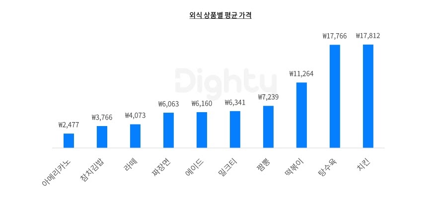 ⠂떡볶이의 평균 가격은 1만원 이상이었으며, 치킨의 평균 금액은 약 1만 8천원으로
