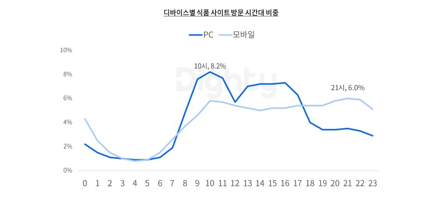 식품판매 사이트 방문 시간대