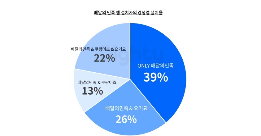 ⠂배달의 민족앱을 설치한 유저 중 약 61%는 다른 배달앱(요기요,쿠팡이츠)을