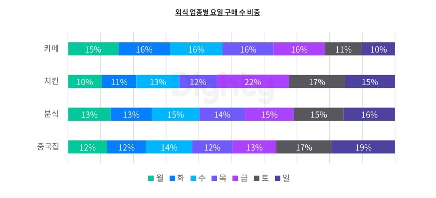 외식 업종별 구매 요일 비중